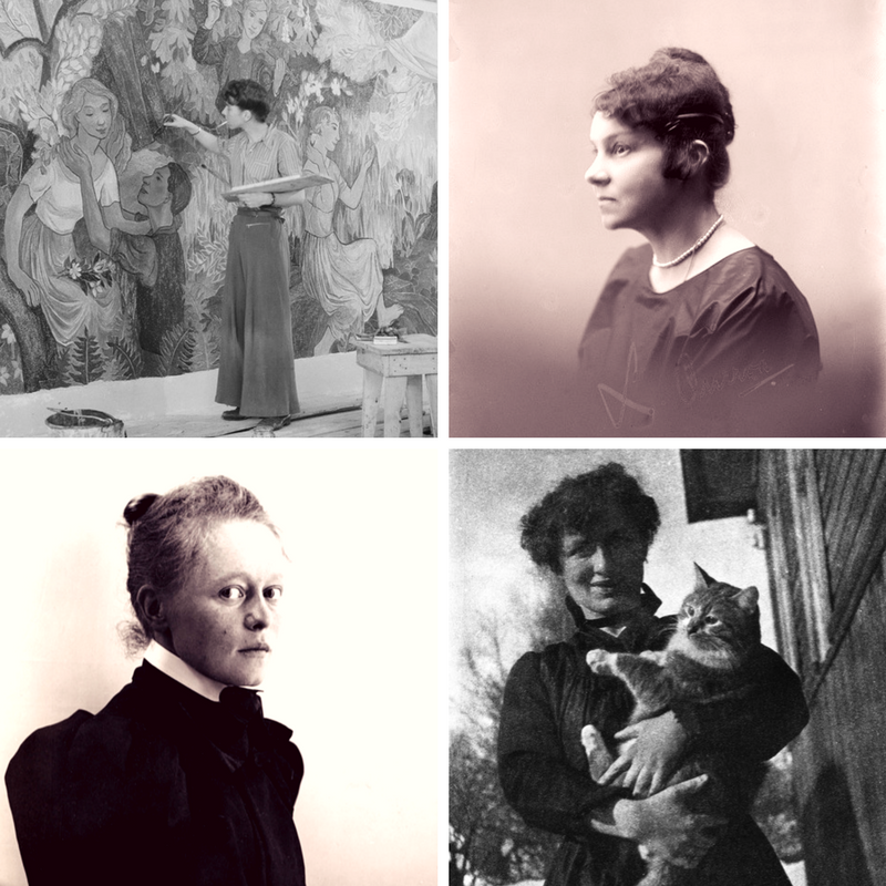 Heihin ei törmää Helsingin kaduilla: Tove Jansson, L. Onerva, Helene Schjerfbeck ja Edith Södergran. Kuvat: finna.fi ja helsinkikuvia.fi